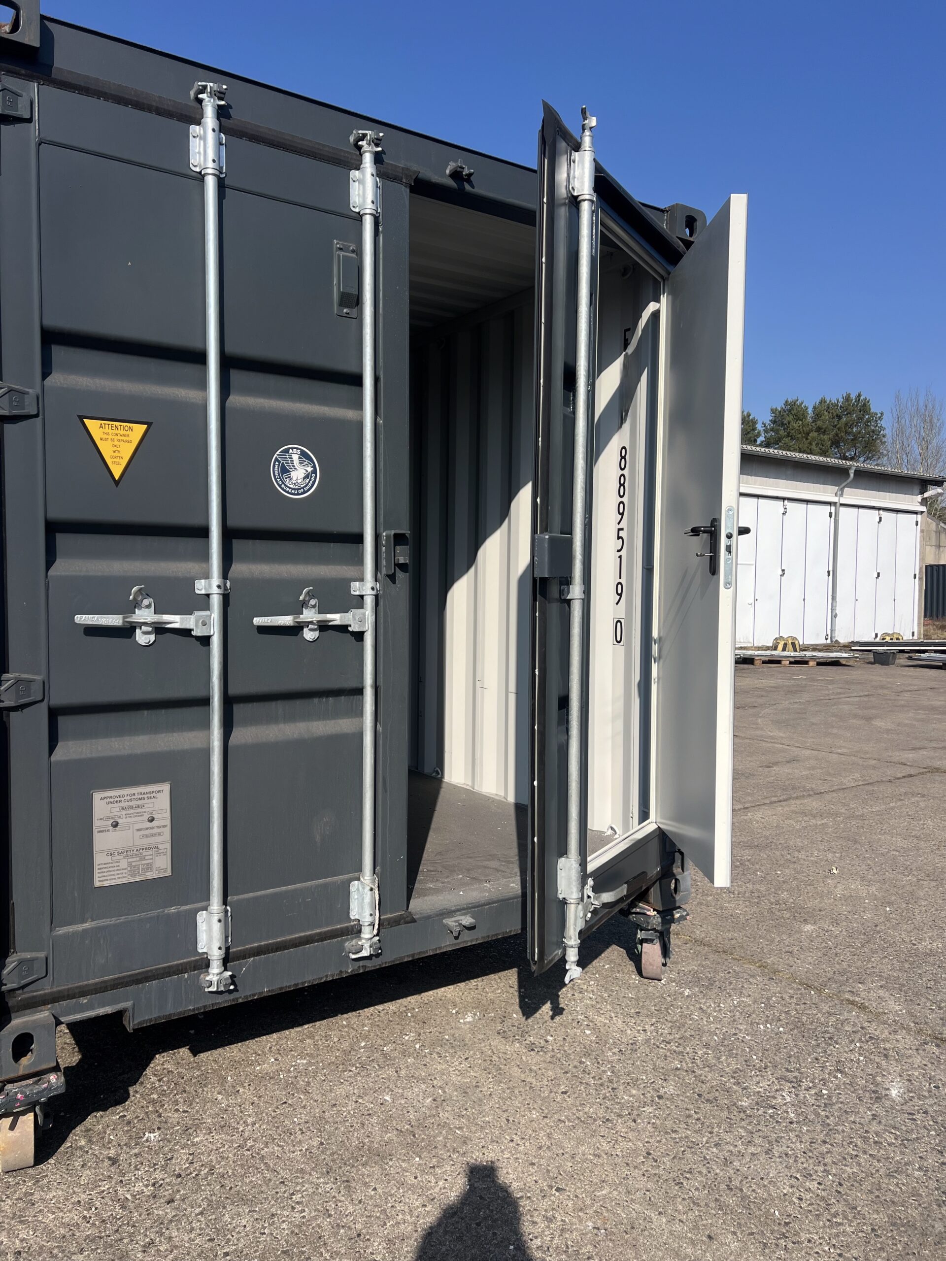 Beim abgebildeten Container handelt es sich um ein Produktbeispiel. Vergleichbare Container sind laufend ab verschiedenen Depots in Deutschland verfügbar, auch in größeren Stückzahlen. Der Container wird optional zum Käufer transportiert (inklusiv Abladen und Aufstellen).